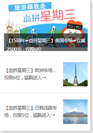 二、东来国旅不定时拿出回馈微信好友的线路回馈秒杀线路(例如:血拼星期三)
